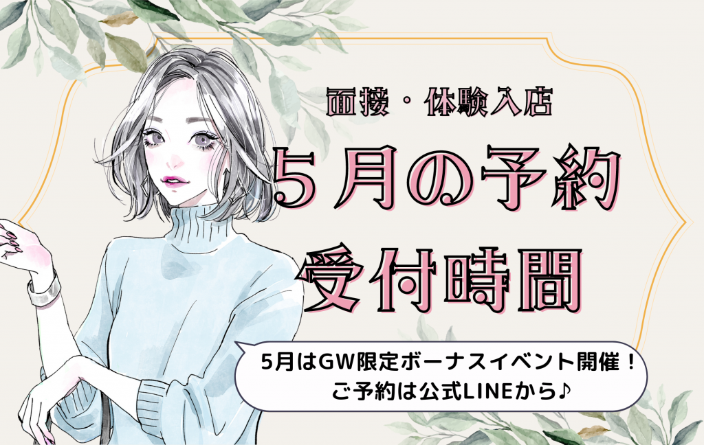 【チャトレ面接・体験入店】5月予約受付時間のご案内☆彡