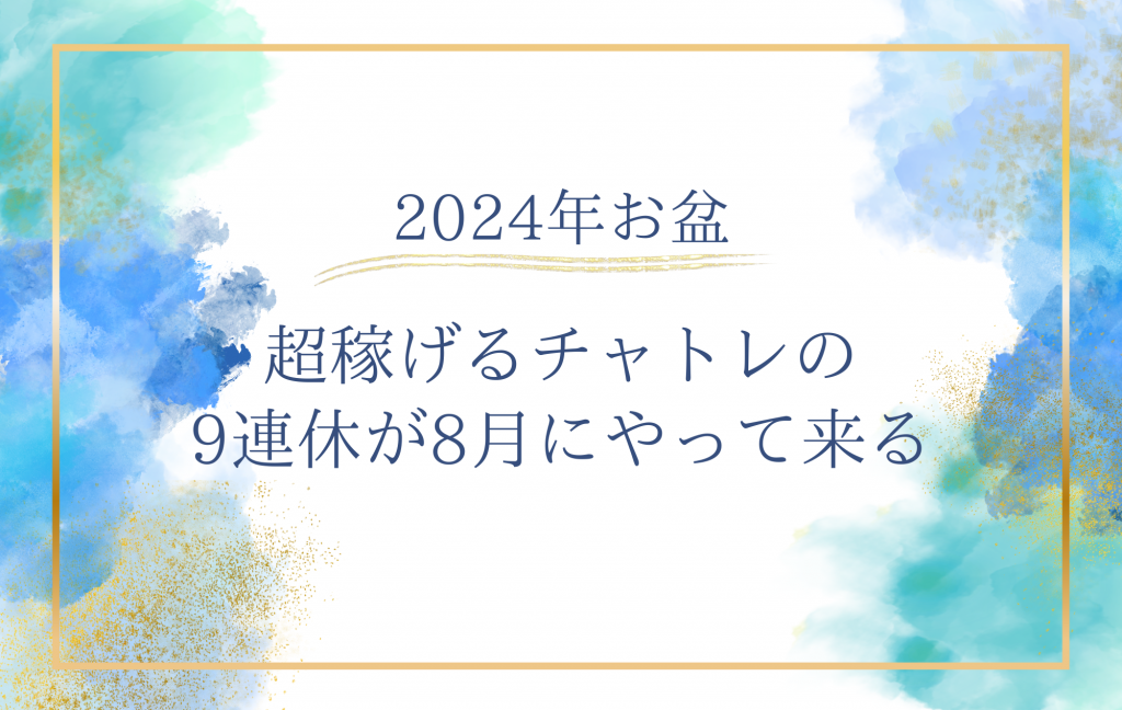【8月超稼ぐ】超稼げるチャトレの9連休が8月にやって来る!