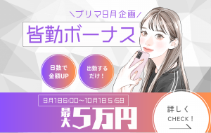 【9月イベント】皆勤ボーナス企画!最大5万円GET【プリマ限定】