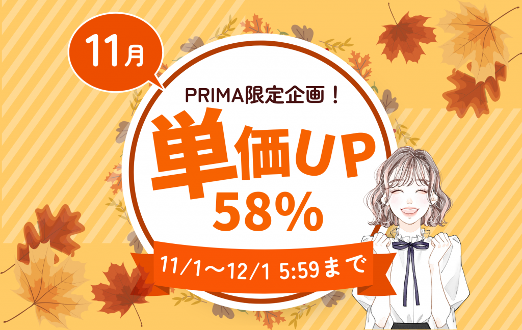 【11月イベント】誰でも報酬率58%のチャンス!冬に向けてプリマで稼ごう!【プリマ限定】
