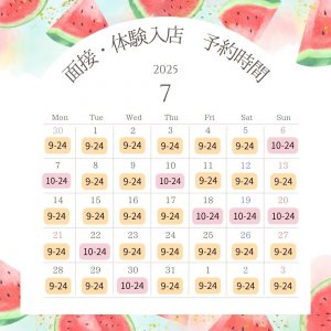 👇7月の面接・体験入店受付時間はこちらです(`・ω・´)