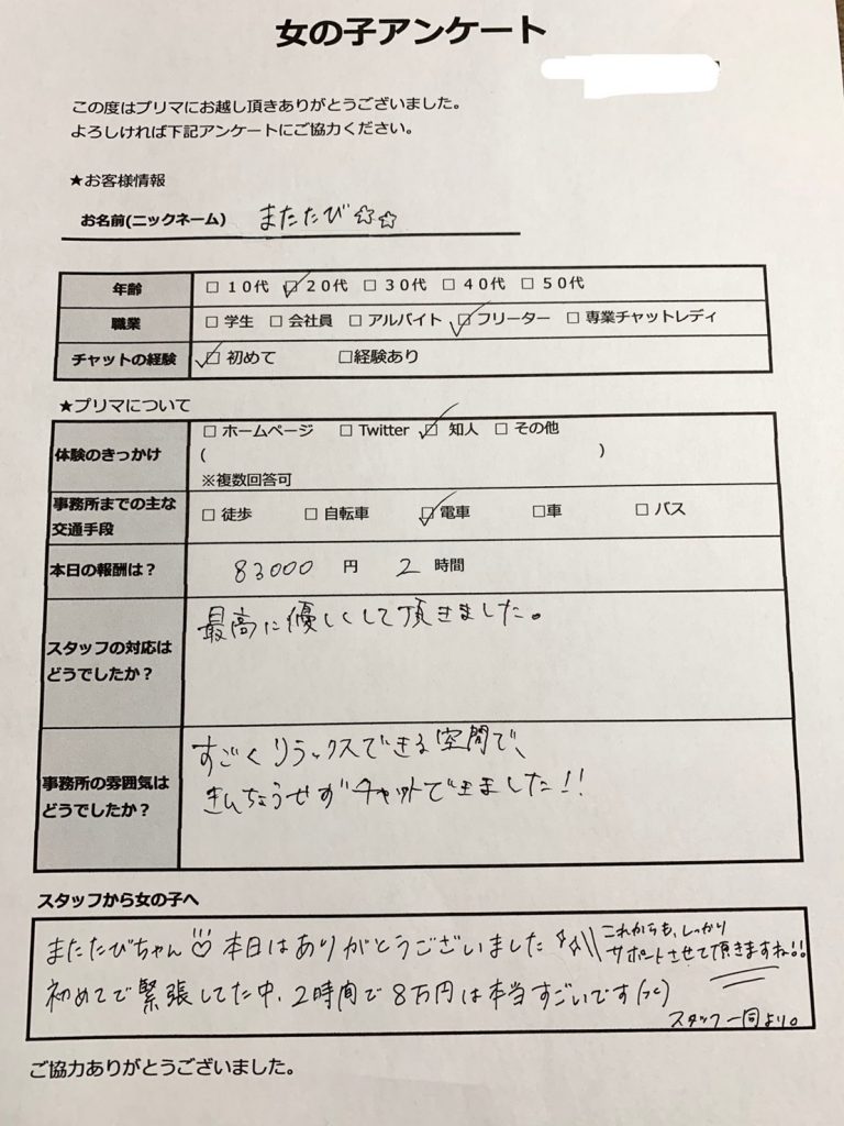 【口コミ】チャトレ体験インタビュー|またたび(8万3千円)