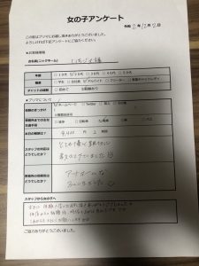▼いちご大福ちゃんの体験後記入したアンケートです