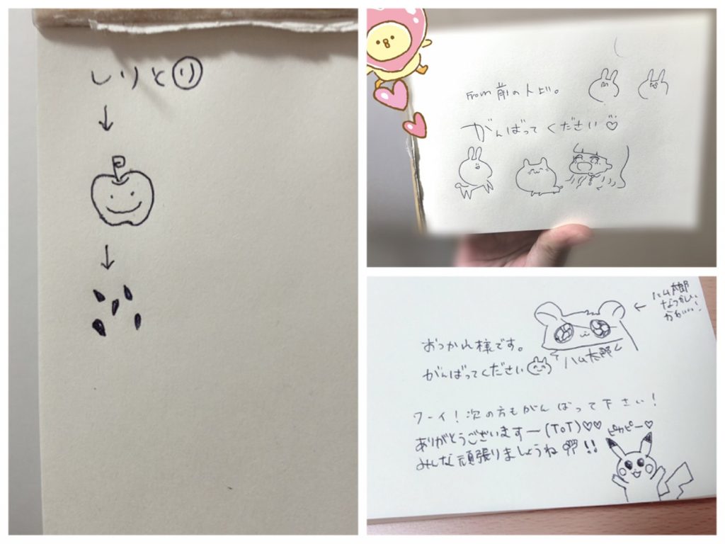 次の子への応援メッセージや、女の子同士の絵しりとりを発見!