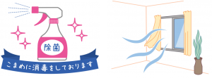 お部屋の使用前後で、清掃と消毒をお願いしています。