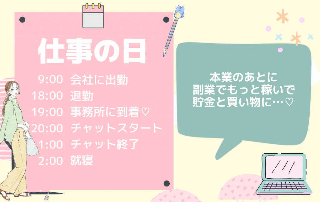 チャットレディの1日~OL編~|副業で本業より稼ぐ♡