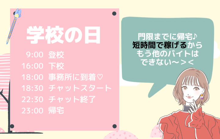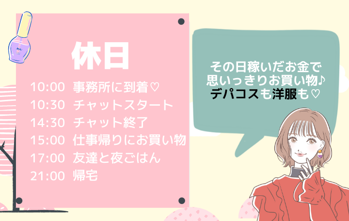 曜日や時間関係なく、「いつでもお仕事できる」のがチャットレディのいいところ♡