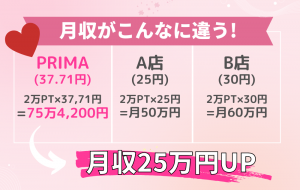 プリマは1pt=約34~37円なので、他店よりも「最大12円」高く報酬をお渡ししています✨