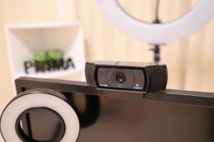 事務所のチャットルームには、パソコン・カメラ・大きいリングライト・可愛い衣装など