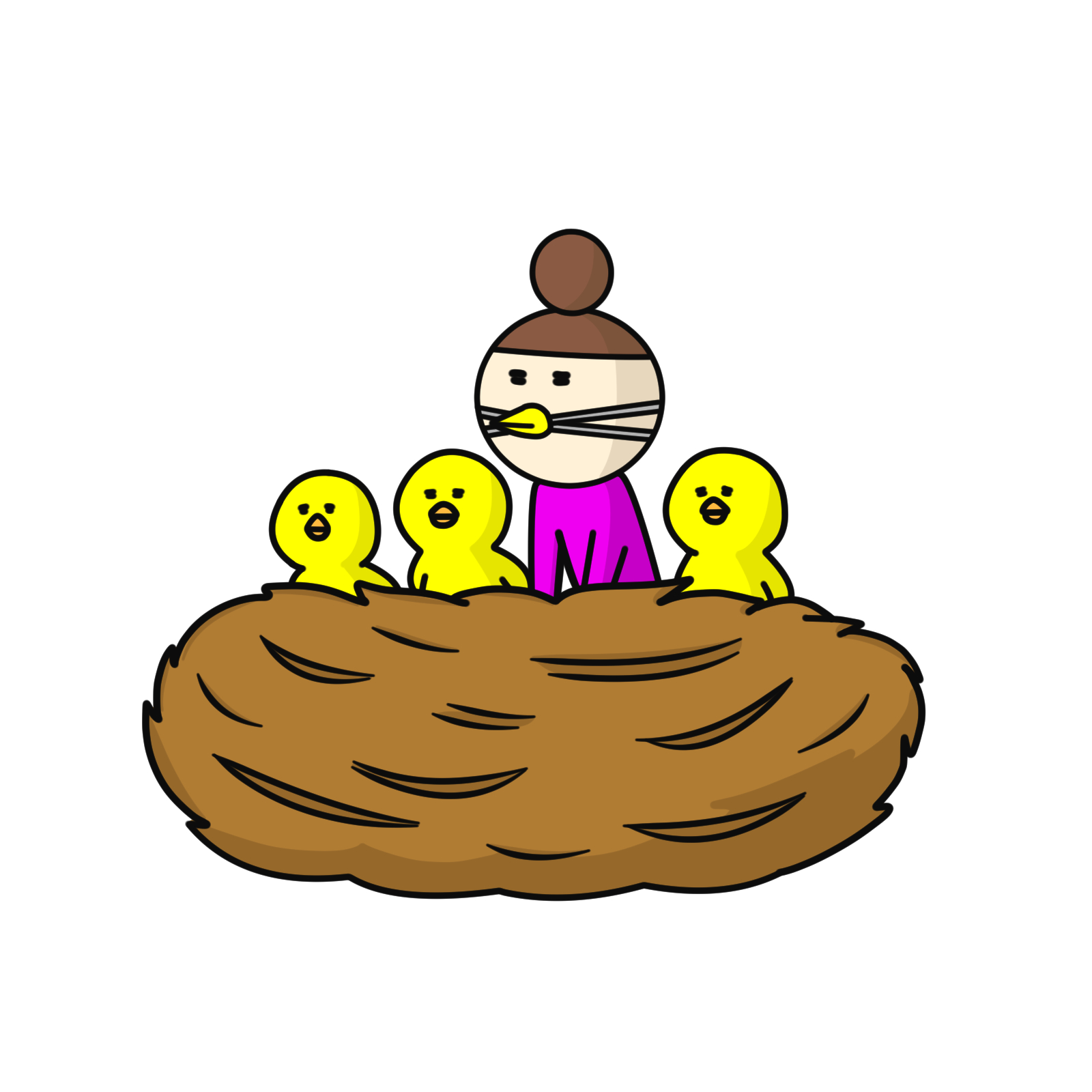 口元に手を当てて、横にゆらゆら体を揺らすことで