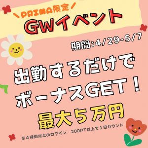 【5月のプリマ限定企画】出勤するだけで最大5万円もらえる!