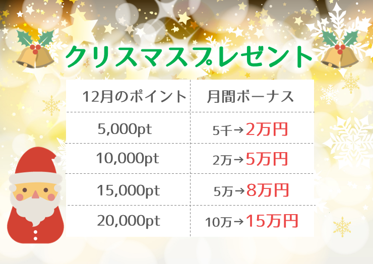12月はボーナスUP☆店長からのクリスマスプレゼント!