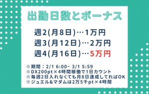 出勤日数に応じて最大5万円のボーナスをお渡しします♡