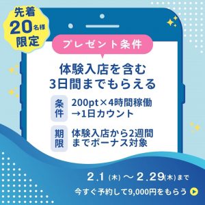 2月は”体験入店に来るとボーナスがもらえる”イベントを